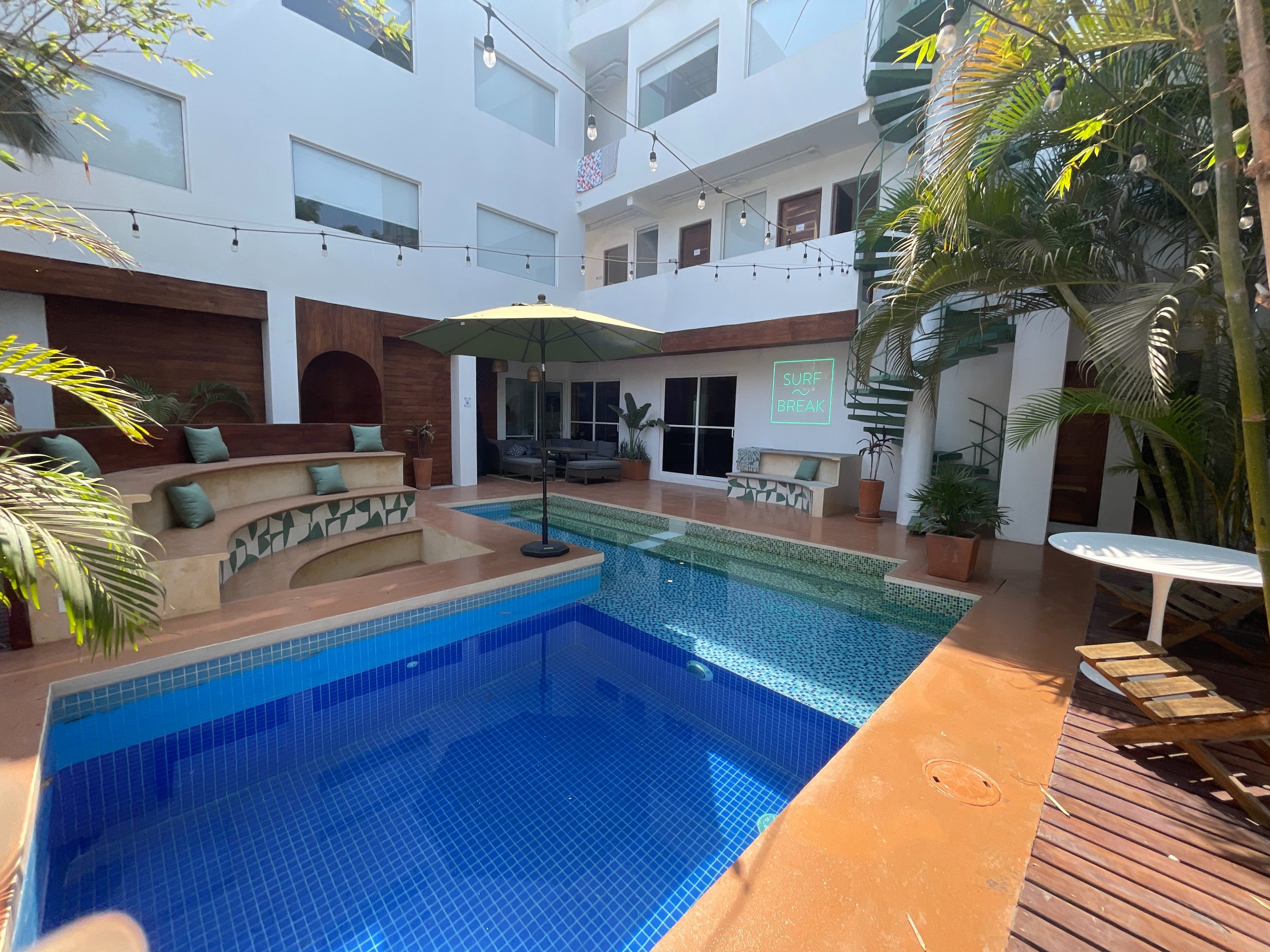 Surfbreak PXM is a premium coliving and coworking space located in Puerto Escondido, Oaxaca between La Punta and Zicatela. Designed for community and collaboration for remote workers, creatives, and surfers, it offers 28 private rooms, high-speed internet with fiber and Starlink, air conditioning, and a whole-house water purification system. The property is powered by 72 solar panels and features a rooftop terrace with ocean views, a pool, and is situated just a minute’s walk from the beach, providing a perfect balance of work and leisure.