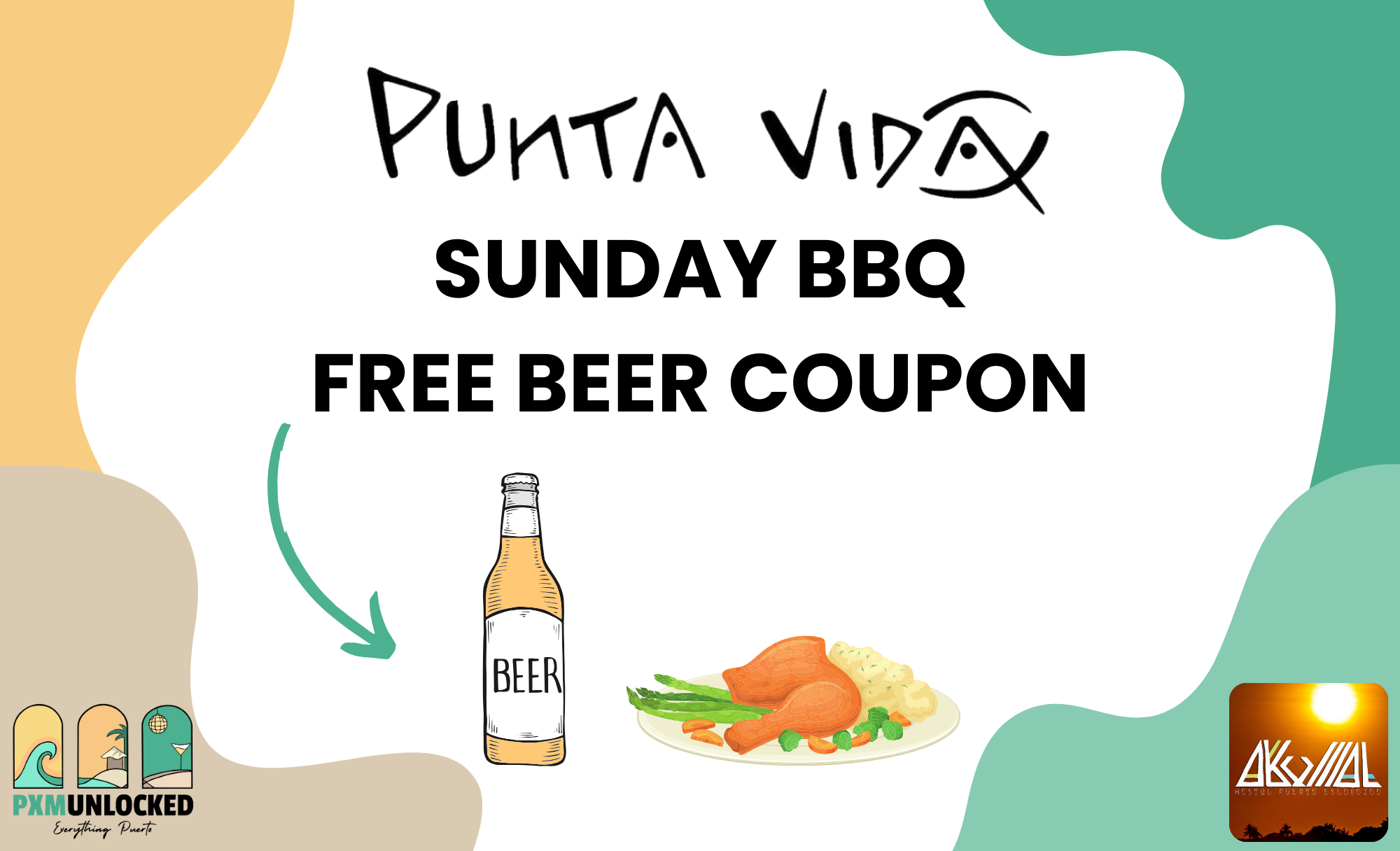 1 Free Beer – Present this coupon at the bar and recieve a free beer when you purchase the Sunday BBQ plate for $170 / Veg  $150