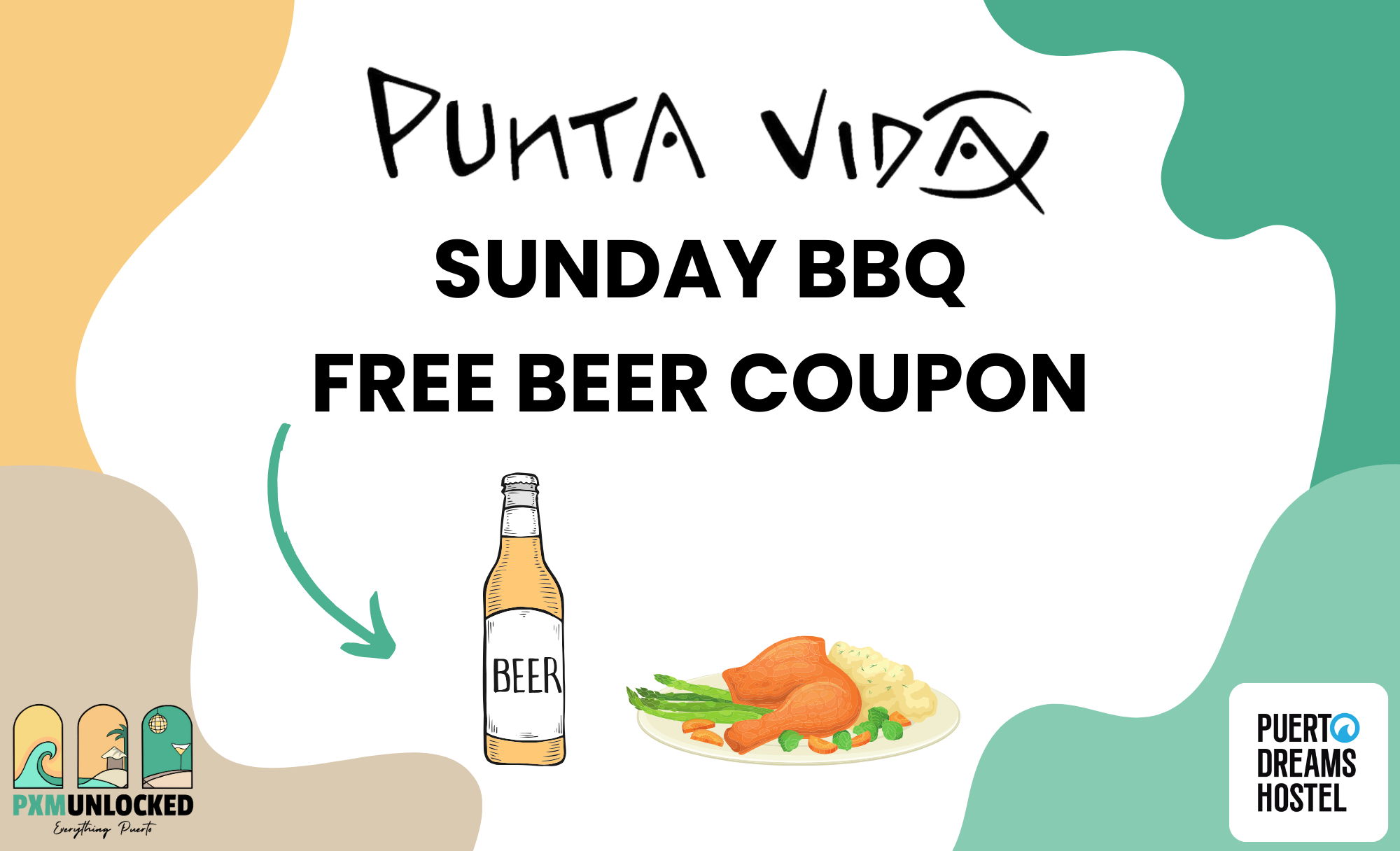 1 Free Beer – Present this coupon at the bar and recieve a free beer when you purchase the Sunday BBQ plate for $170 / Veg  $150